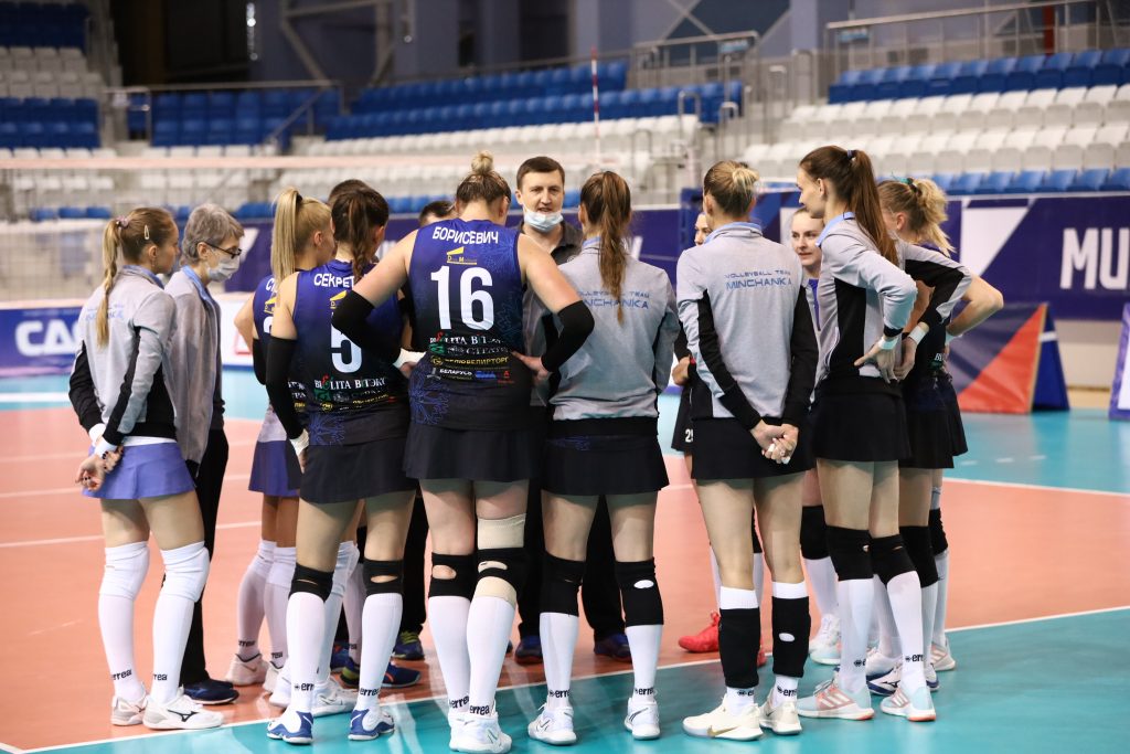 Вечером 28 ноября, спустя 2 месяца со старта регулярного чемпионата, состоялась долгожданная первая домашняя игра «Минчанки» во Дворце спорта «Уручье». Предвкушение интересного волейбольного вечера было омрачено тишиной трибун арены – соблюдая все меры предосторожности игра проходила за закрытыми дверями. А все белорусские болельщики главной команды страны были вынуждены в этот вечер прильнуть к своим гаджетам в онлайн-трансляции. В белорусскую столицу первой из российских соперников приехала команда Юрия Маричева «Протон», которая на данный момент играет весьма уверенно даже с лидерами турнира. Но уже с первых минут на площадке стал очевиден решительный настрой «Минчанки» на игру: не смогли они скрыть блеск в глазах и надежду завоевать первую победу в чемпионате именно в домашних стенах.