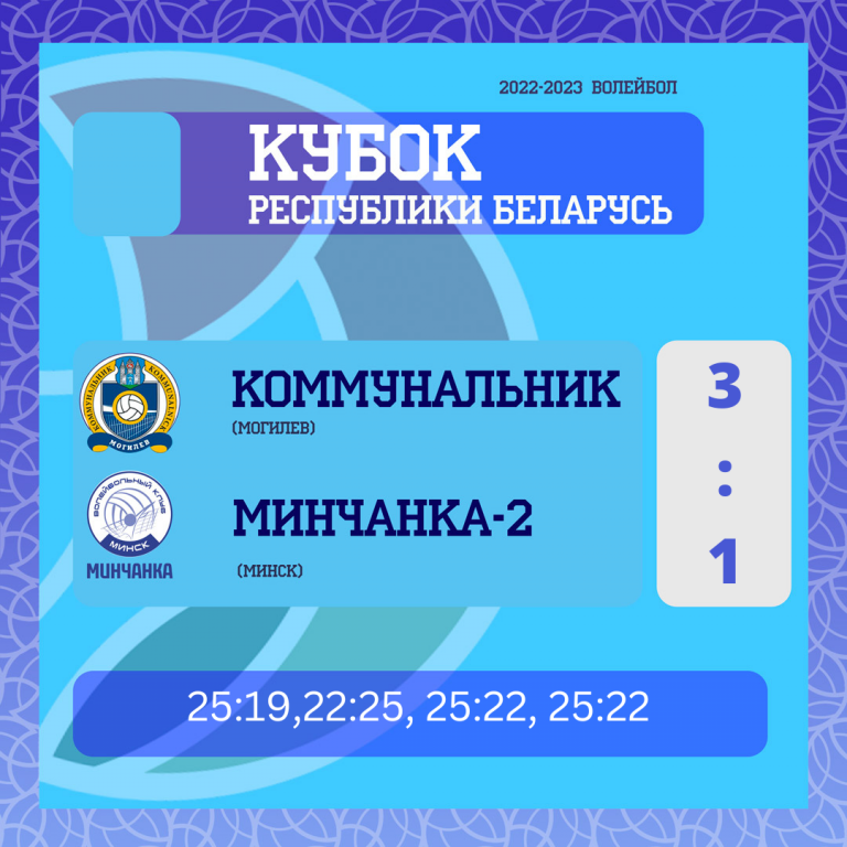 В четвёртом же сете «Коммунальник-Могилев» с самого начала активно вышел в отрыв. «Минчанка-2» старалась сократить преимущество соперника, но не удалось. Итоговый счёт чета – 25:12 в пользу команда из Могилёва. А общий счёт встречи – 3:1, победу одержал «Коммунальник-Могилев».