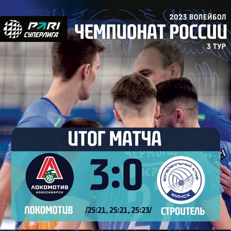 В первой партии команды показывали равную борьбу. Эйсы новосибирцев Костадинова и Лызика закрепили преимущество “Локомотива” в два очка (счет 12:10). Эффективно работали в атаке минчане Владислав Черныш и Никита Кулешов, у хозяев матча – Казаченков.  “строителю” удалось несколько сократить разрыв за счет ошибок в игре новосибирской команды, но этого оказывается не достаточно для того, чтобы победить. Первая партия завершается в пользу “Локомотива”, счет 25:21.