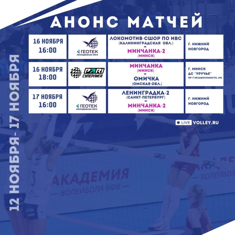«Минчанка» играет дома: в д/с «Уручье»16 ноября принимаем «Омичку», всех ждём на трибунах!