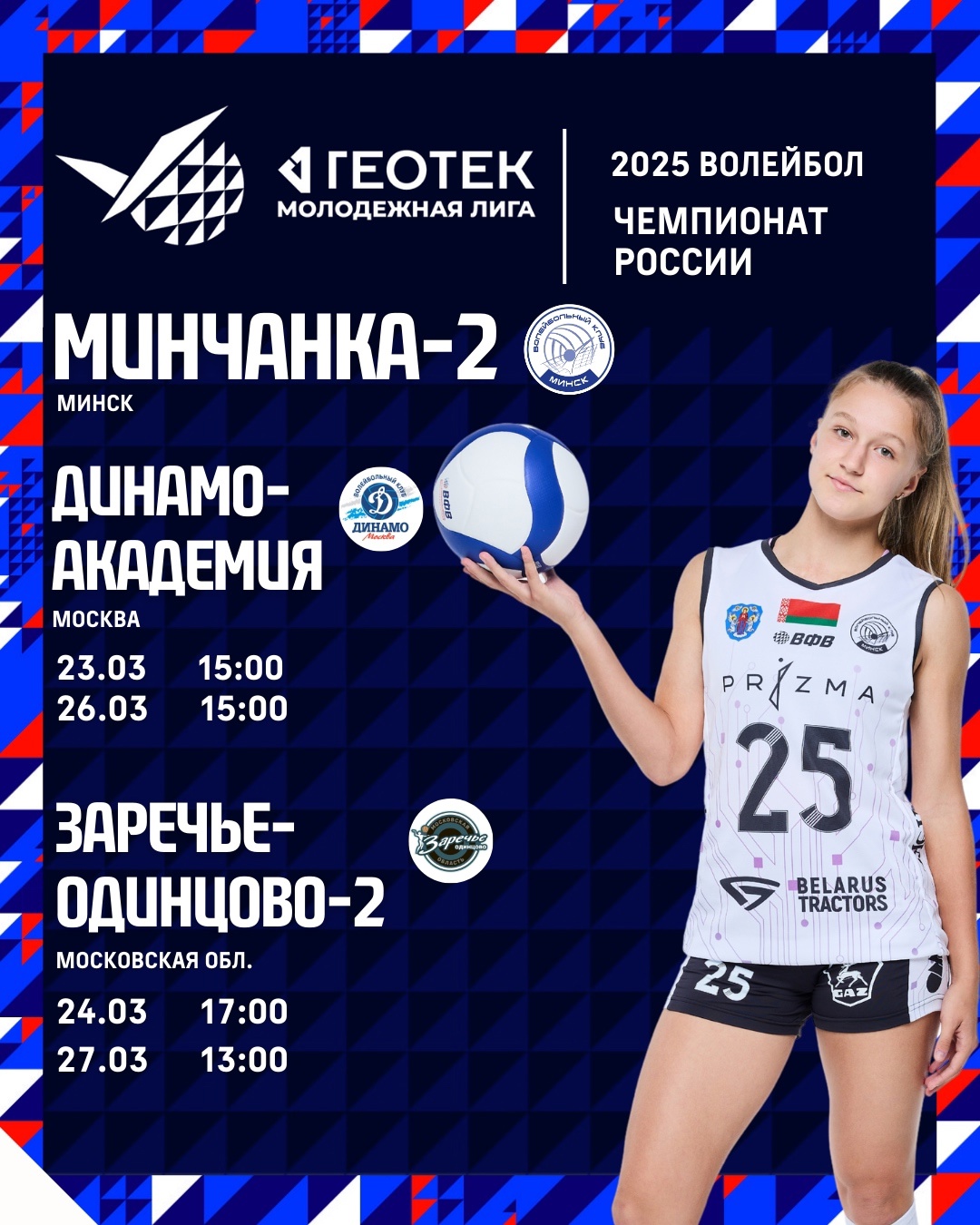 Уже в это воскресенье наша команда стартует в заключительном туре группового этапа Молодёжной лиги ГЕОТЕК! Впереди — встречи с серьёзными соперниками: Динамо-Академией и Заречьем-Одинцово-2.