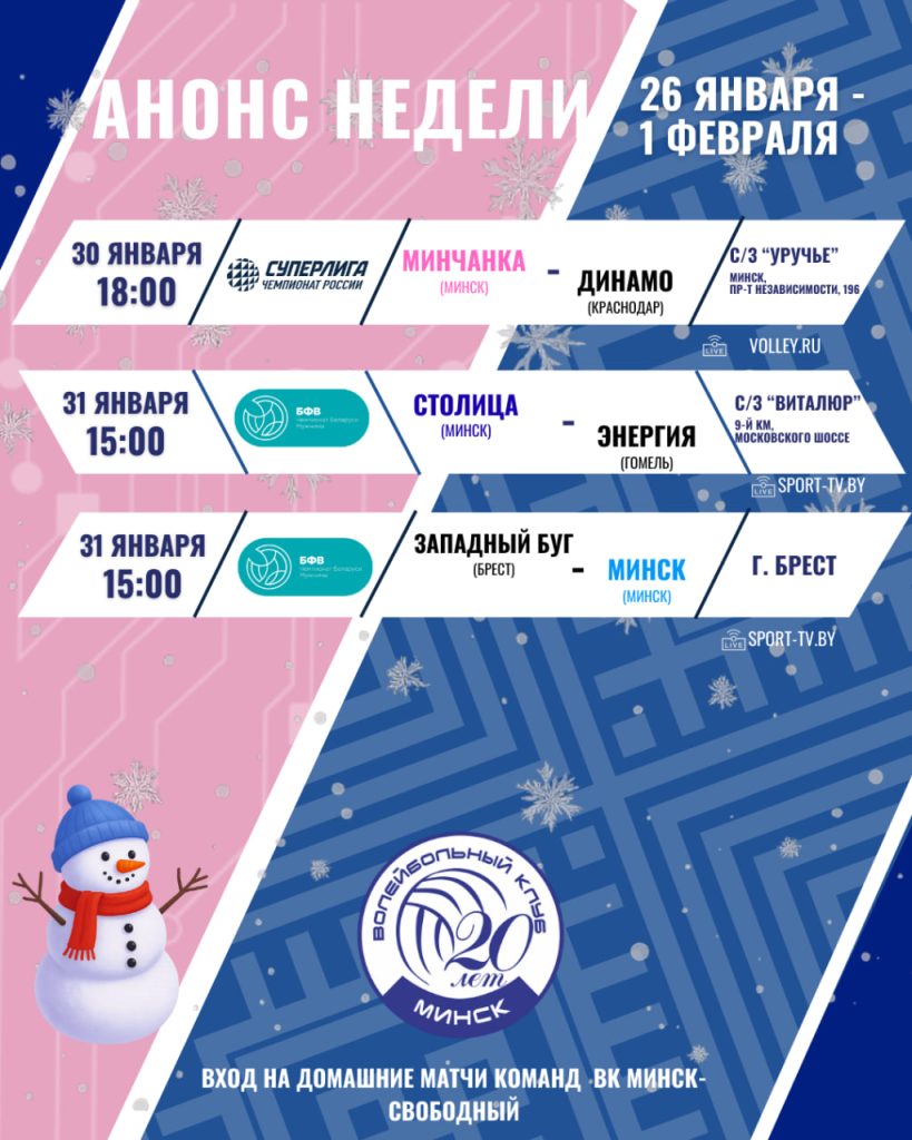 АНОНС НЕДЕЛИ 26 ЯНВАРЯ – 1 ФЕВРАЛЯ